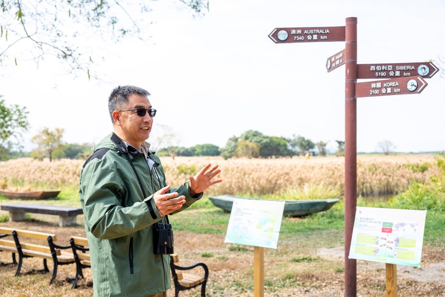 Photo taken on Jan. 11, 2024 shows Wen Xianji, director of Mai Po Nature Reserve and Flyway Program of the World Wide Fund for Nature Hong Kong (WWF-HK), in Mai Po Nature Reserve in Hong Kong, south China. (Xinhua/Zhu Wei)