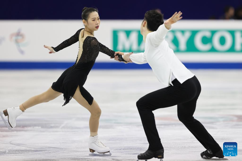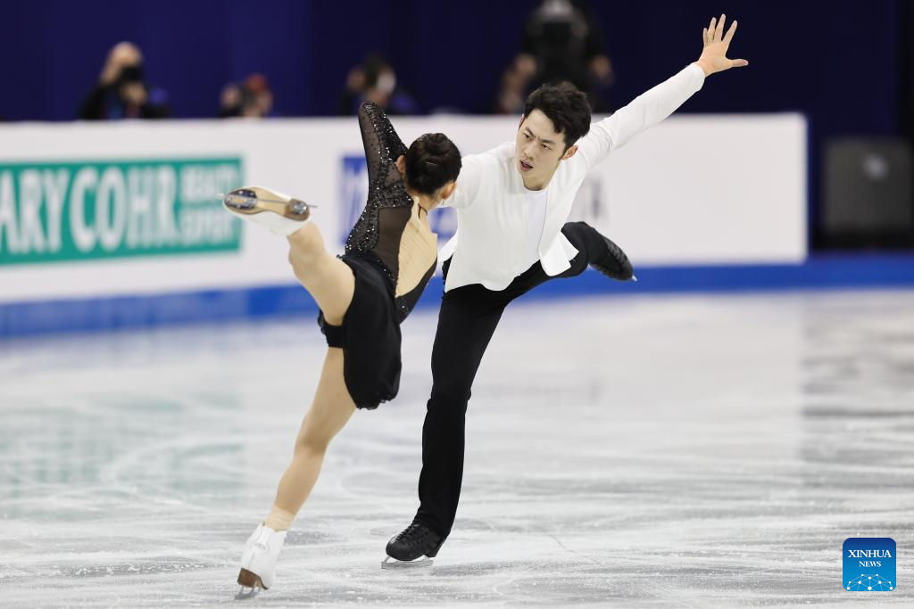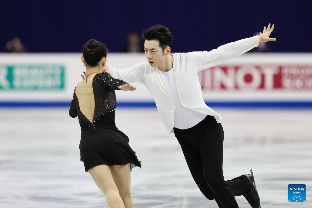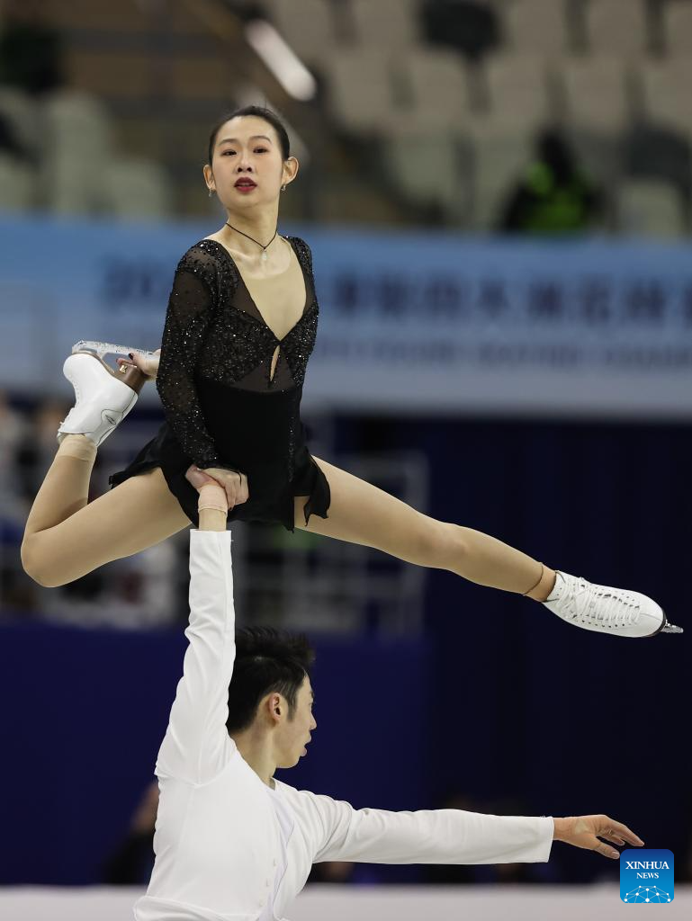 Peng Cheng /Wang Lei (R) of China perform during the pairs free skating of ISU Four Continents Figure Skating Championships 2024 in Shanghai, east China, Feb. 3, 2024. (Xinhua/Wang Xiang)