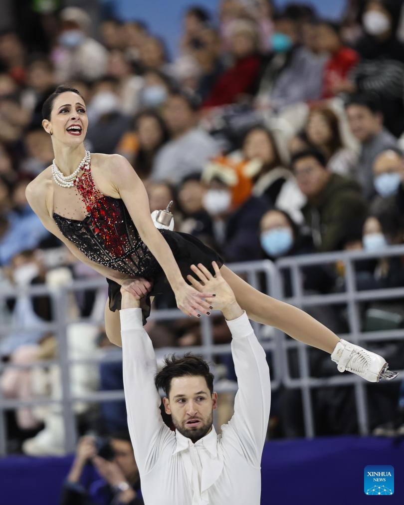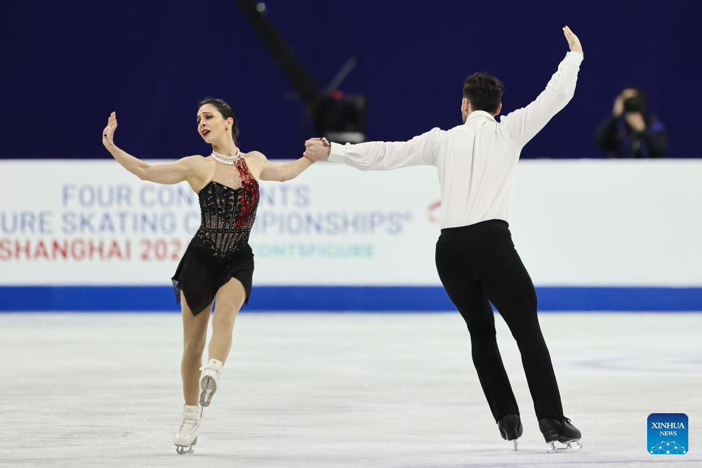 Deanna Stellato-Dudek (R)/Maxime Deschamps of Canada perform during the pairs free skating of ISU Four Continents Figure Skating Championships 2024 in Shanghai, east China, Feb. 3, 2024. (Xinhua/Wang Xiang)