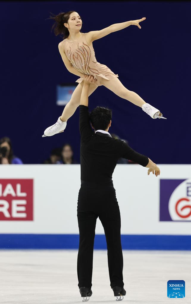 Deanna Stellato-Dudek (top)/Maxime Deschamps of Canada perform during the pairs free skating of ISU Four Continents Figure Skating Championships 2024 in Shanghai, east China, Feb. 3, 2024. (Xinhua/Wang Xiang)