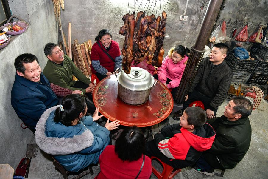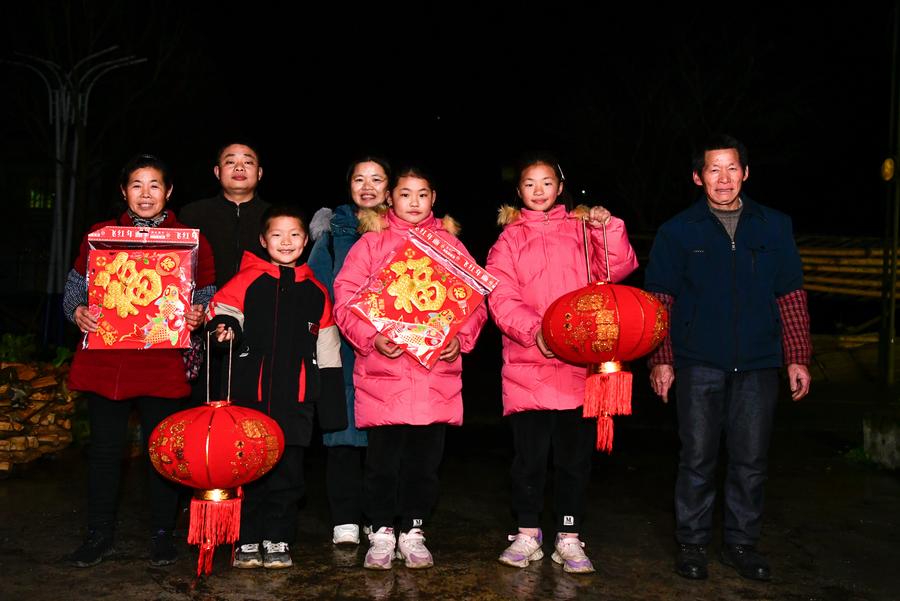 QIANDONGNAN, Feb. 3 (Xinhua) -- Min Deshui and his wife Long Chunxiang hailing from southwest China's Guizhou Province have been working in Tonglu County of east China's Zhejiang Province for 11 years.