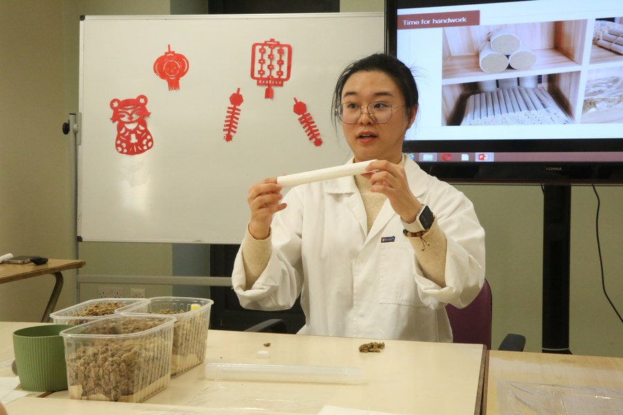 Through the hands-on experience of crafting moxa sticks, students gained a deeper understanding of moxibustion, a crucial TCM treatment method, said Wang. She emphasized that this activity enhances their perception and experience of TCM and Chinese culture.