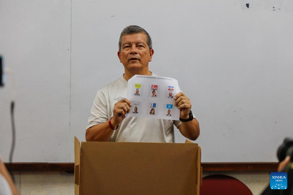 Manuel Flores, one of the presidential candidates, casts his vote during the presidential election in Quezaltepeque, El Salvador, Feb. 4, 2024. Incumbent Salvadoran President Nayib Bukele announced on Sunday that he had won the presidential election with more than 85 percent of votes.