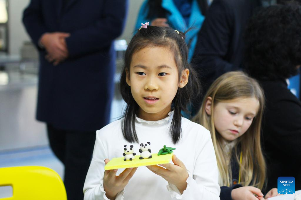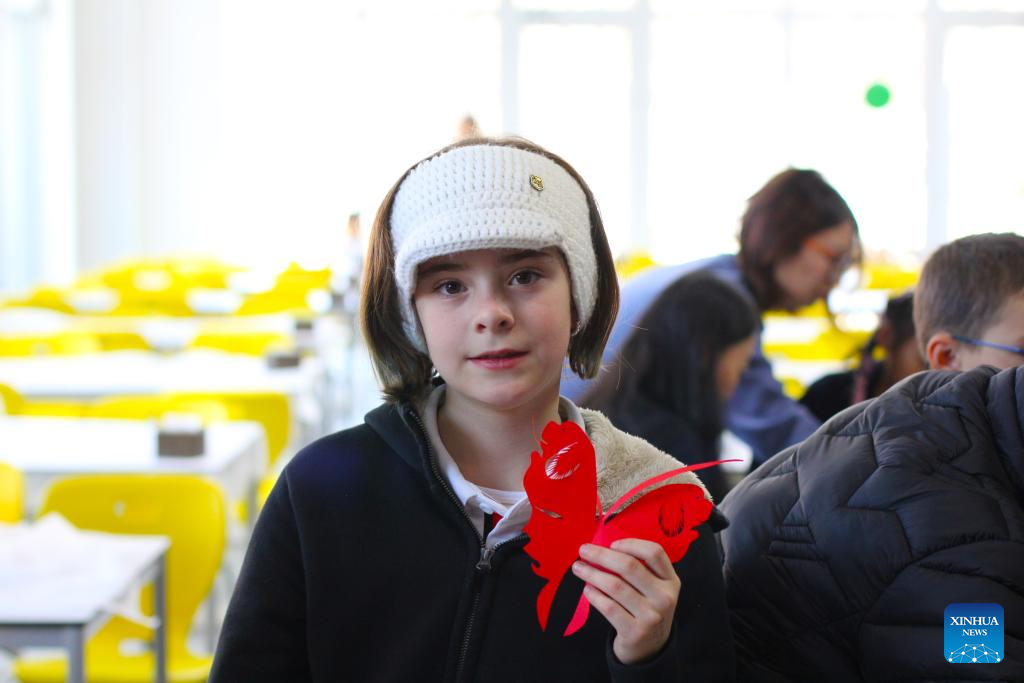 SHENYANG, Feb. 5 (Xinhua) -- During an art class at HuZ School in Tiexi District, located in northeast China's Shenyang City, the eighth graders were busy crafting a giant 3D decorative painting depicting the Year of the Dragon, guided by their art teacher Yang Huanhuan.