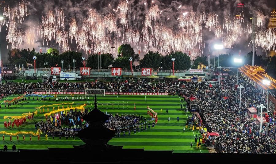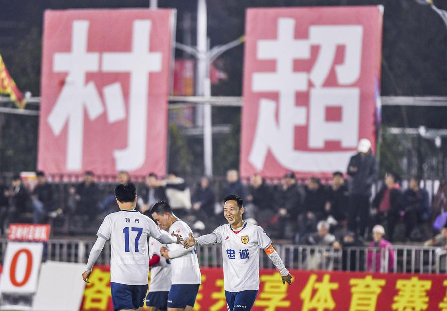 GUIYANG, Feb. 5 (Xinhua) -- Around 5:20 p.m. on Feb. 3, as the whistle blew, a football match in Rongjiang County, southwest China's Guizhou Province, kicked off as part of this year's Village Super League as well as to mark the upcoming Spring Festival.