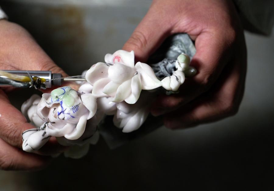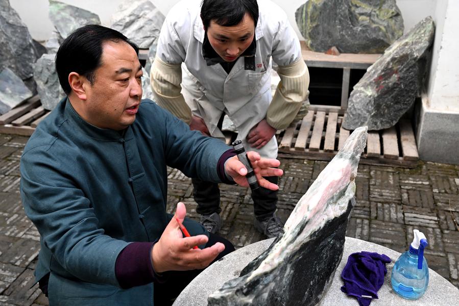 ZHENPING, Feb. 6 (Xinhua) -- With Dushan jade as its primary raw material, the Zhenping jade carving is a traditional folk art originated from Zhenping County of Nanyang City, central China's Henan Province. Through more than 10 procedures, ranging from material selection, designing to carving, the raw jade is ultimately transformed into exquisite artwork that strike a delicate harmony between the natural beauty of the raw jade and its given form.