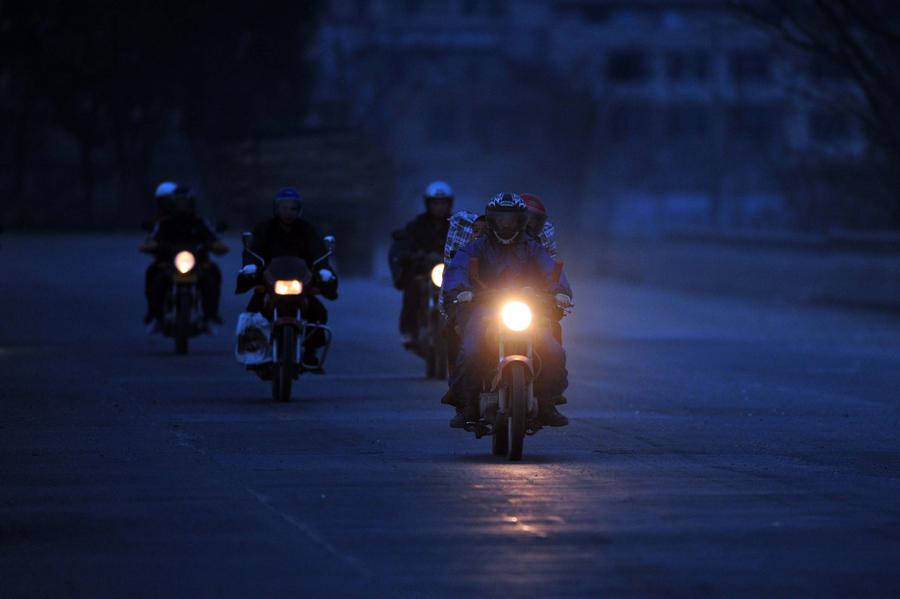 According to the transport department of Guangdong, there were a record 1.1 million motorcyclists exiting and entering the province around the Spring Festival in 2013. That number has since declined.