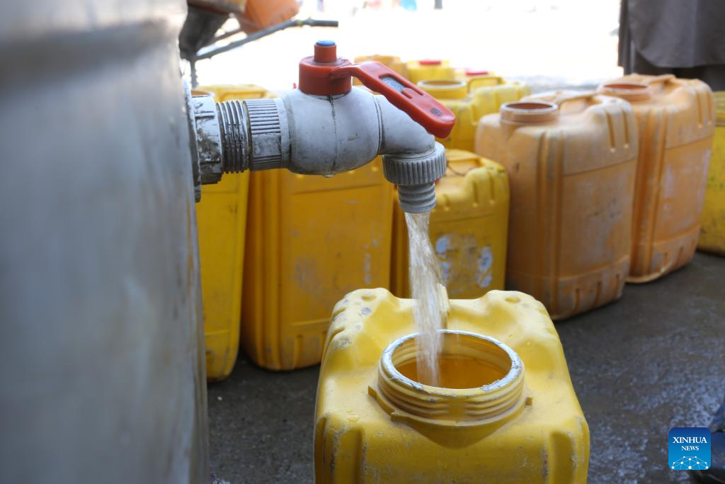 This photo taken on Feb. 8, 2024 shows a water tank in Kabul, the capital of Afghanistan. Climate change and frequent years of drought have deprived 21 million Afghans, almost half of Afghanistan's population, of access to potable water, Deputy Head of National Environment Program Agency (NEPA) Abdul Salam Haqqani said.