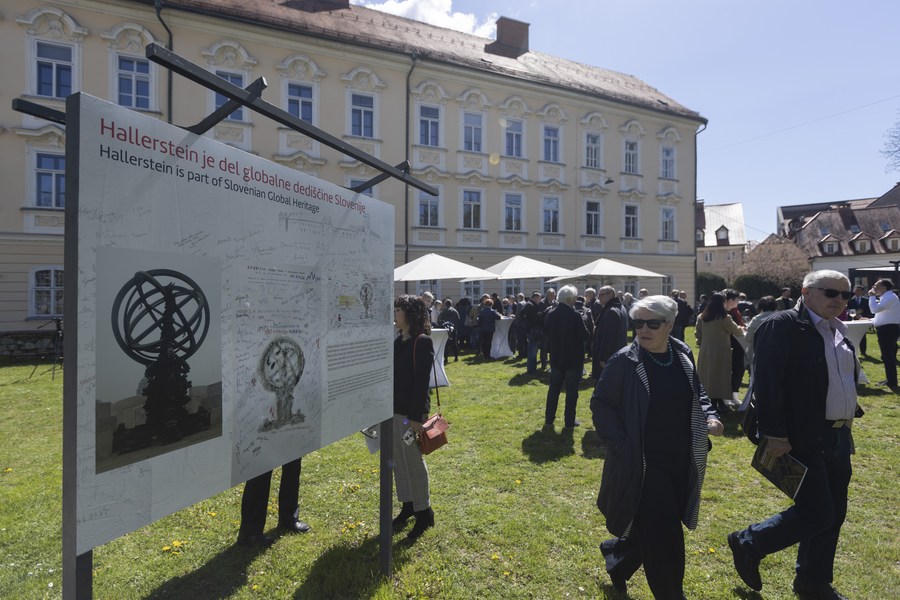 This photo taken on Feb. 6, 2024 shows a view of the inauguration ceremony of a replica of Hallerstein-designed armillary sphere in Ljubljana, Slovenia. (Photo by Zeljko Stevanic/Xinhua)