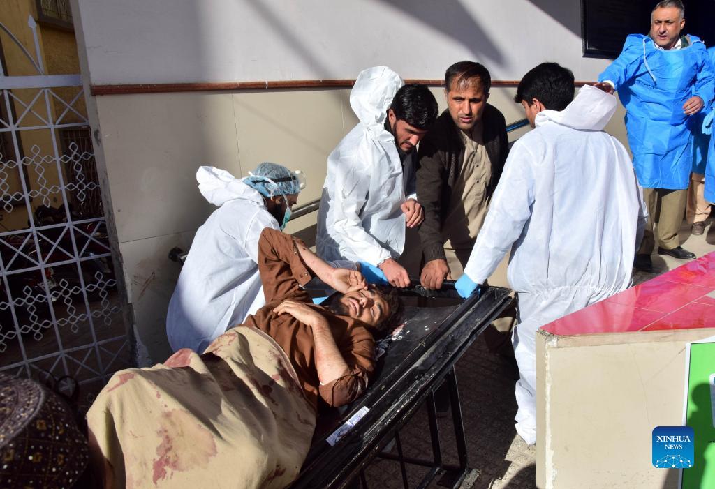 A man injured in a blast in Qila Saifullah district is transported to Quetta, the provincial capital of Balochistan province, Pakistan, Feb. 7, 2024. Just a day before Pakistan's general elections, two powerful explosions hit election campaign offices in the country's southwest Balochistan province on Wednesday, killing at least 26 people while injuring over 45 others, said police and hospital officials. (Photo by Asad/Xinhua)