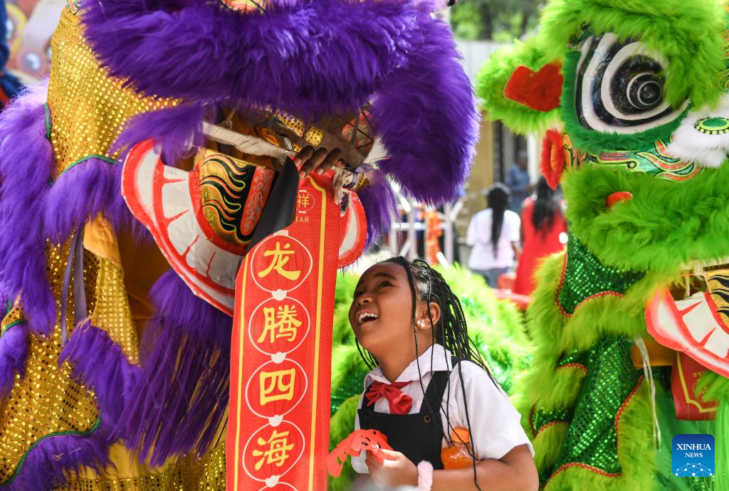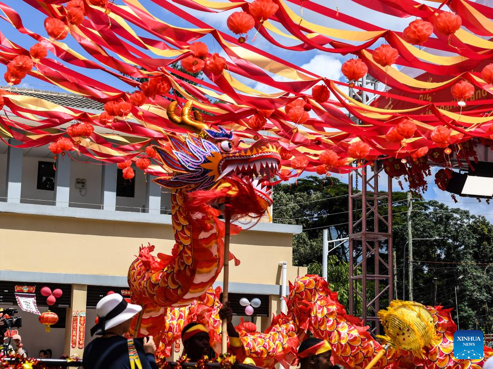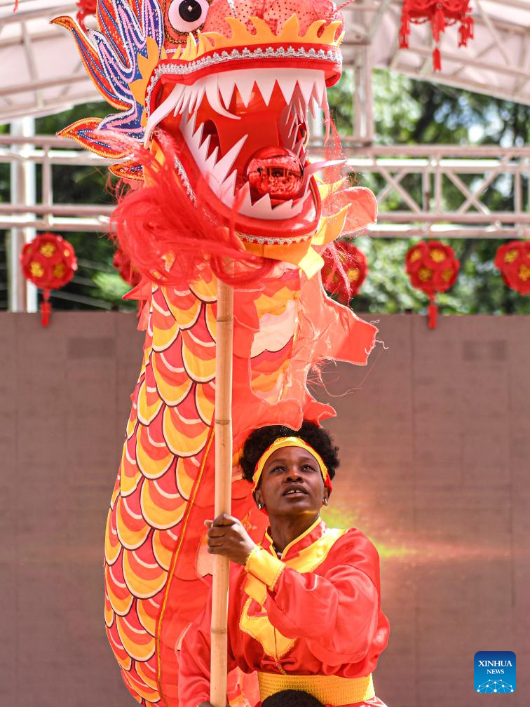 This photo taken on Feb. 7, 2024 shows a dragon dance performance during a Chinese New Year celebration event in Nairobi, Kenya.
