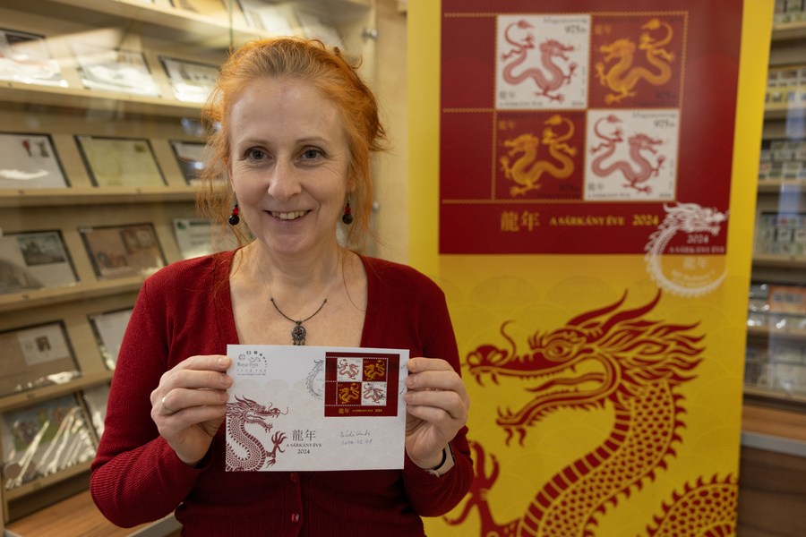 BUDAPEST, Feb. 8 (Xinhua) -- Katalin Bodi, the Hungarian designer of the Year of the Dragon commemorative stamp recently issued by the Hungarian Post, said she hoped her work could help deepen the connection between Hungary and China.