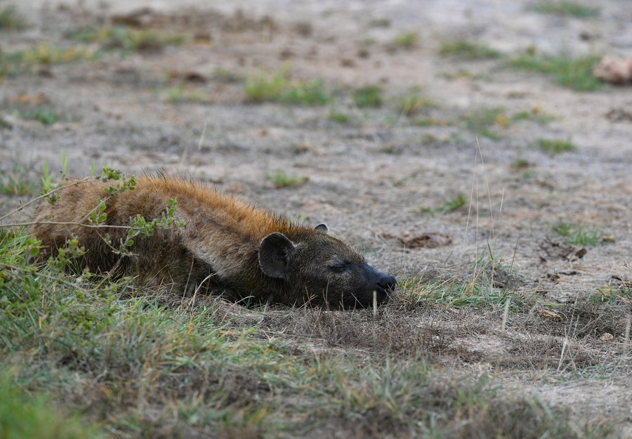 A hyena rests in Amboseli National Park, Kenya, June 16, 2019. (Xinhua/Li Yan)