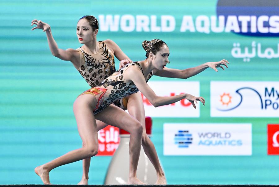 DOHA, Feb. 9 (Xinhua) -- After Dutch twins Bregje and Noortje de Brouwer scored a remarkable 250.4979 points in Thursday's artistic swimming duet free final, spectators in Doha held their breath as the final pair, Chinese twins Wang Liuyi and Wang Qianyi, took to the water.
