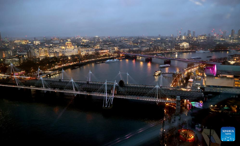 This photo taken on Feb. 8, 2024 shows a view of the River Thames during the twilight in London, Britain. (Xinhua/Li Ying)
