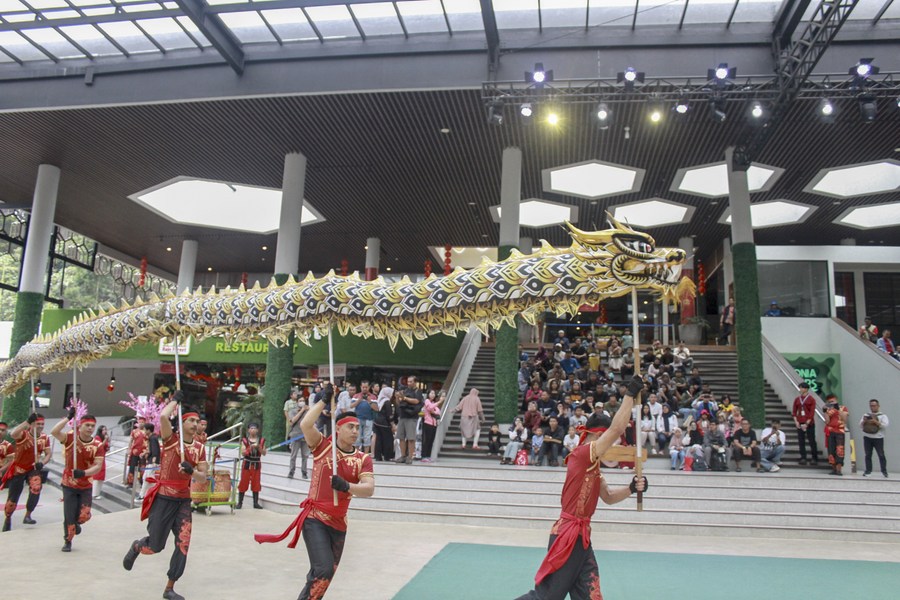 People perform the dragon dance during a Chinese Lunar New Year celebration at Taman Safari zoo in Bogor, West Java, Indonesia, on Feb. 9, 2024. (Photo by Sandika Fadilah/Xinhua)