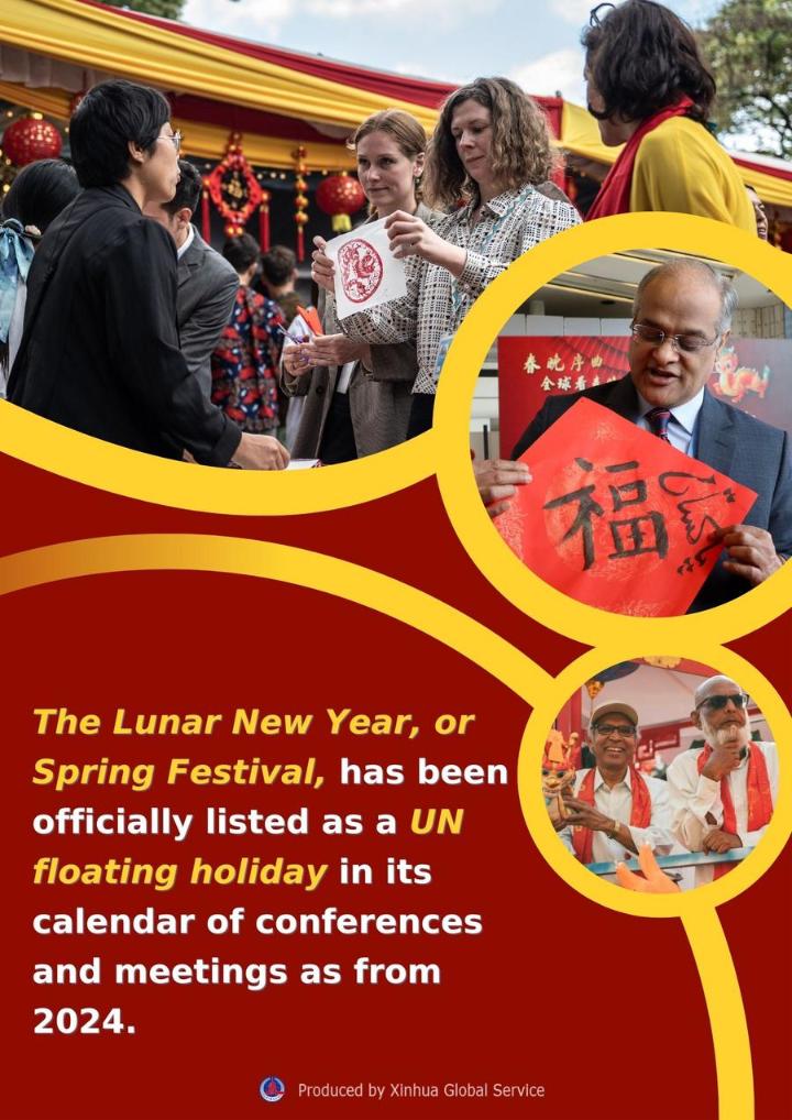 In December 2023, the Lunar New Year, or Spring Festival, has been officially listed as a UN holiday starting 2024.