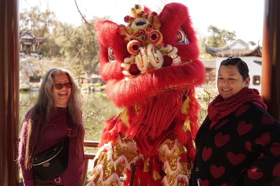 People attend a Chinese New Year festival at the Huntington Library, Art Museum and Botanical Gardens in Southern California, the United States, Feb. 10, 2024. (Photo by Zeng Hui/Xinhua)