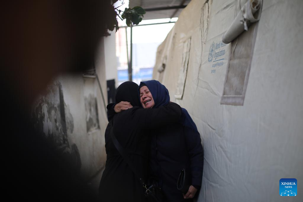People mourn victims after an Israeli airstrike in the southern Gaza Strip city of Rafah, on Feb. 10, 2024. The Israeli army has been launching intensive airstrikes on Rafah city in the south of Gaza since Friday night, killing at least 28 people, reported the state-run Palestine TV. (Photo by Khaled Omar/Xinhua)
