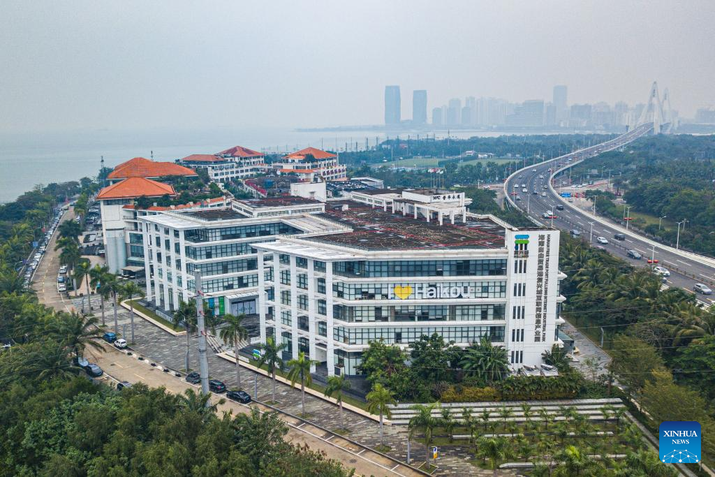An aerial drone photo taken on Feb. 10, 2024 shows the Fullsing Internet Industrial Park in Haikou, south China's Hainan Province. The key parks of Hainan Free Trade Port have achieved a revenue of around 2.24 trillion yuan (about 311.7 billion U.S. dollars) in 2023, an 18.3 percent increase year on year, according to data released by the Hainan Provincial Bureau of Statistics. (Xinhua/Pu Xiaoxu)
