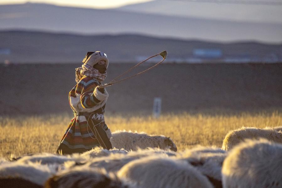 LHASA, Feb. 11 (Xinhua) -- Tibetan herder Tenzin is wrapped in a thick traditional robe, a headscarf and gloves as protection against the chill wind that sweeps across the vast prairie in southwest China's Xizang Autonomous Region. Even so, she had her nails meticulously done to celebrate the Tibetan New Year.