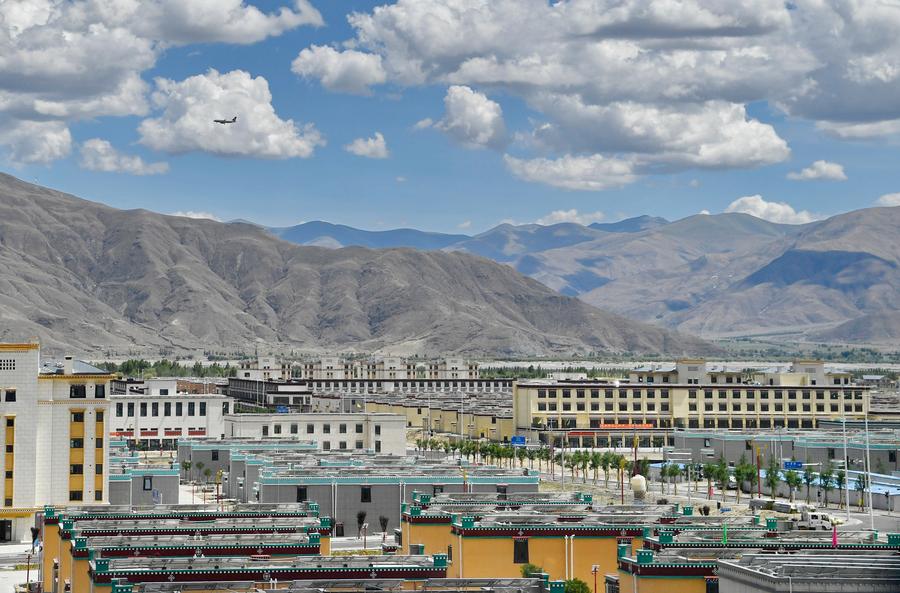 The community, home to more than 30,000 residents relocated from high-altitude areas, is equipped with a newly-built hospital, a kindergarten, a school, a market and a recreation center. Tenzin's two younger brothers now go to the new school.