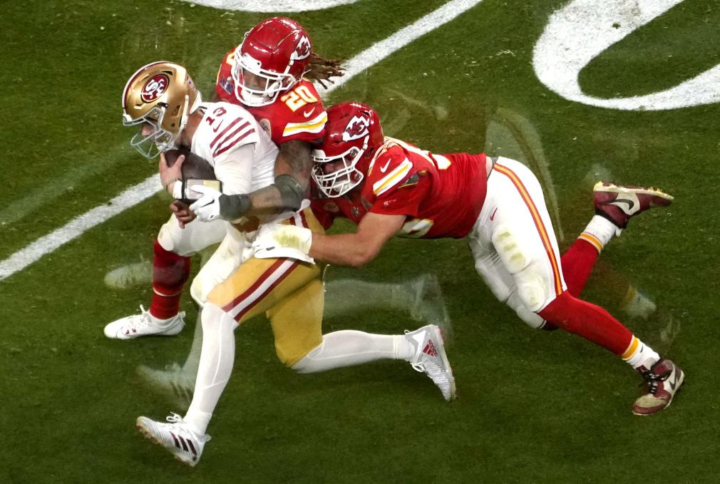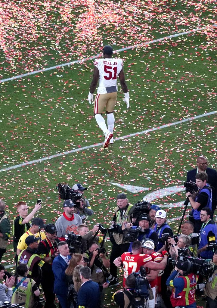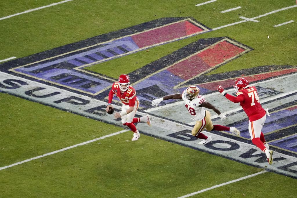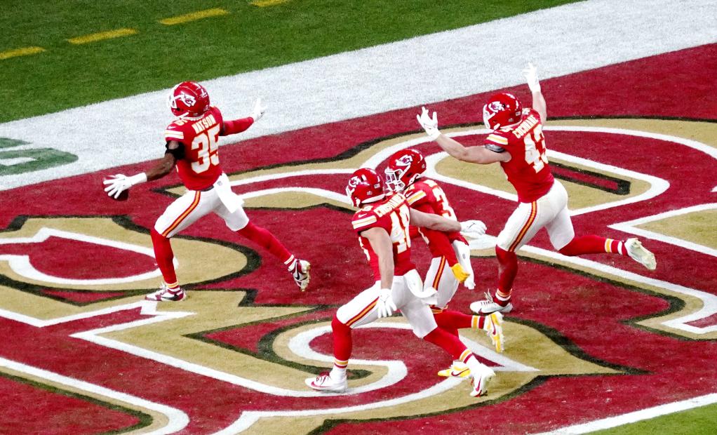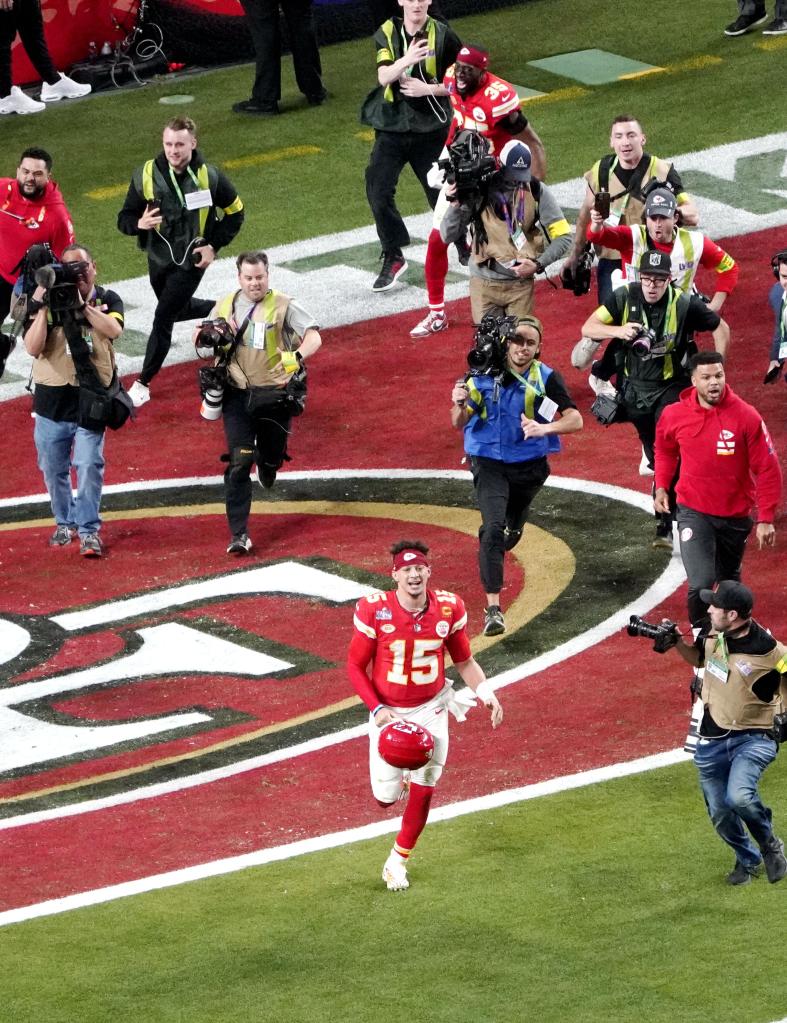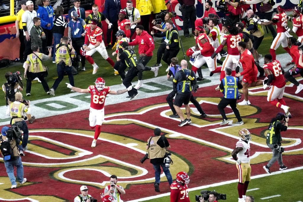 Noah Gray (C) of Kansas City Chiefs celebrates after the NFL Super Bowl LVIII football game between San Francisco 49ers and Kansas City Chiefs in Las Vegas, the United States, Feb.11, 2024. (Xinhua/Wu Xiaoling)Players of Kansas City Chiefs celebrate after the NFL Super Bowl LVIII football game between San Francisco 49ers and Kansas City Chiefs in Las Vegas, the United States, Feb.11, 2024. (Xinhua/Wu Xiaoling)Patrick Mahomes (L) of Kansas City Chiefs celebrates after the NFL Super Bowl LVIII football game between San Francisco 49ers and Kansas City Chiefs in Las Vegas, the United States, Feb.11, 2024. (Xinhua/Wu Xiaoling)Patrick Mahomes (C) of Kansas City Chiefs celebrates after the NFL Super Bowl LVIII football game between San Francisco 49ers and Kansas City Chiefs in Las Vegas, the United States, Feb.11, 2024. (Xinhua/Wu Xiaoling)Jake Moody of San Francisco 49ers reacts during the NFL Super Bowl LVIII football game between San Francisco 49ers and Kansas City Chiefs in Las Vegas, the United States, Feb.11, 2024. (Xinhua/Wu Xiaoling)Robert Beal Jr. of San Francisco 49ers leaves the pitch after the NFL Super Bowl LVIII football game between San Francisco 49ers and Kansas City Chiefs in Las Vegas, the United States, Feb.11, 2024. (Xinhua/Wu Xiaoling)Brock Purdy (top R) of San Francisco 49ers competes during the NFL Super Bowl LVIII football game between San Francisco 49ers and Kansas City Chiefs in Las Vegas, the United States, Feb.11, 2024. (Xinhua/Wu Xiaoling)