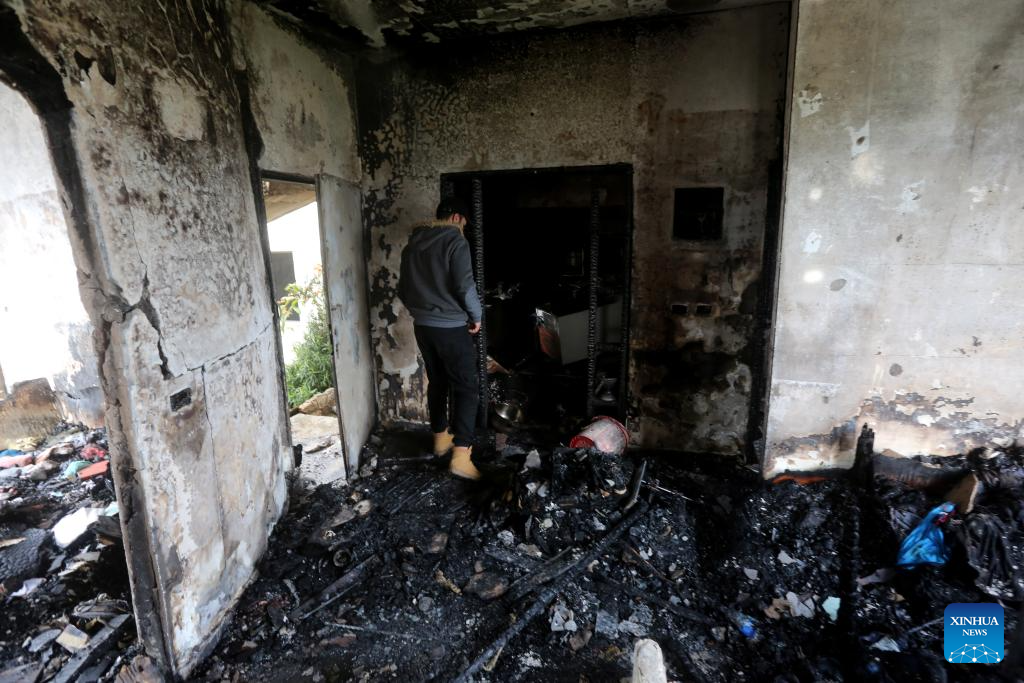 A man inspects a building damaged in an Israeli raid in the West Bank city of Jenin, on Feb. 13, 2024. Local Palestinian sources said that during the past hours, the Israeli army stormed a number of West Bank areas, including Qalqilya and the Jenin refugee camp, destroying roads and vehicles belonging to Palestinians during the raids. (Photo by Nidal Eshtayeh/Xinhua)