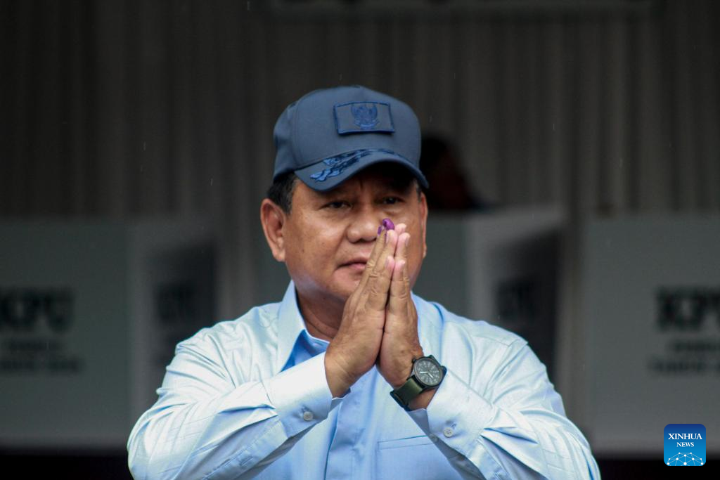 JAKARTA, Feb. 14 (Xinhua) -- Presidential candidate Prabowo Subianto took the lead in Indonesia's presidential election as he secured more than 58 percent of votes from over 90 percent of votes counted in various quick counts on Wednesday night.