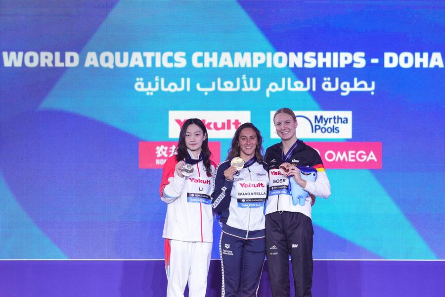 Italy's Simona Quadarella dominated the women's 1500m freestyle, finishing in 15 minutes and 46.99 seconds. China's Li Bingjie was 9.63 seconds shy to secure second place, while Isabel Gose of Germany claimed the bronze medal.