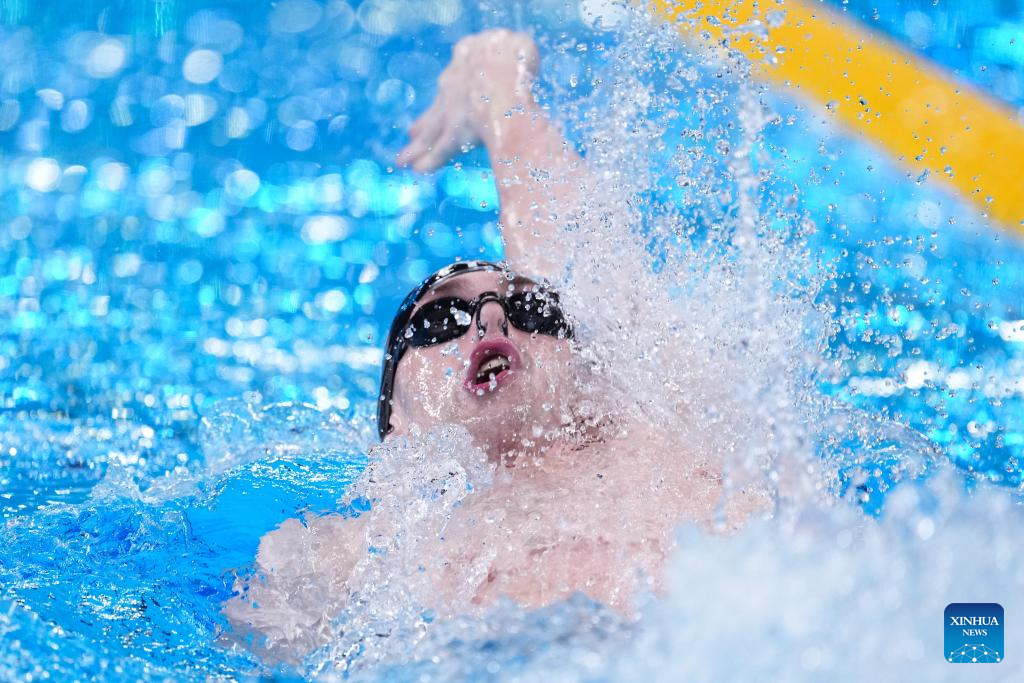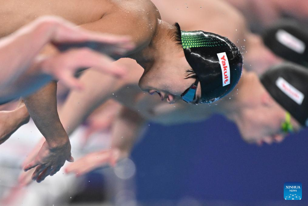Hwang Sunwoo of South Korea competes during the men's 200m freestyle final of swimming event at the World Aquatics Championships 2024 in Doha, Qatar, Feb. 13, 2024. (Xinhua/Xue Yuge)