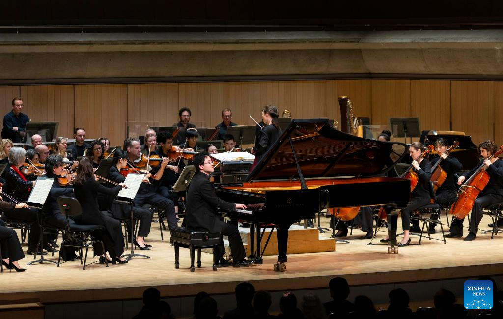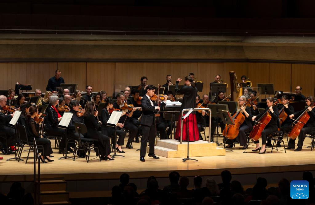 Artists perform at Roy Thomson Hall in Toronto, Canada, Feb. 13, 2024. A concert in celebration of the Chinese New Year of the Dragon was held here by the Toronto Symphony Orchestra on Tuesday. (Photo by Zou Zheng/Xinhua)