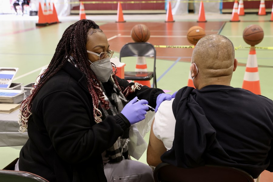 A health worker administers a COVID-19 vaccine shot to a resident in Los Angeles, the United States, on Dec. 17, 2022. (Xinhua)