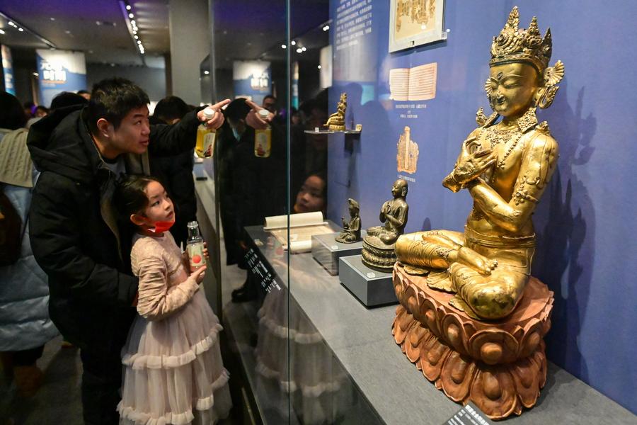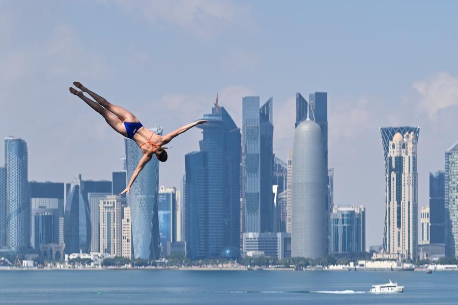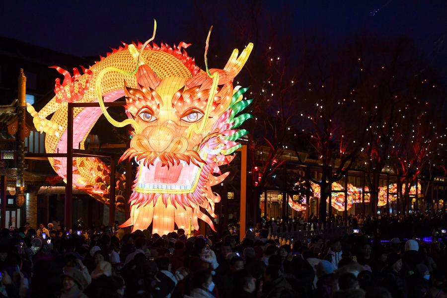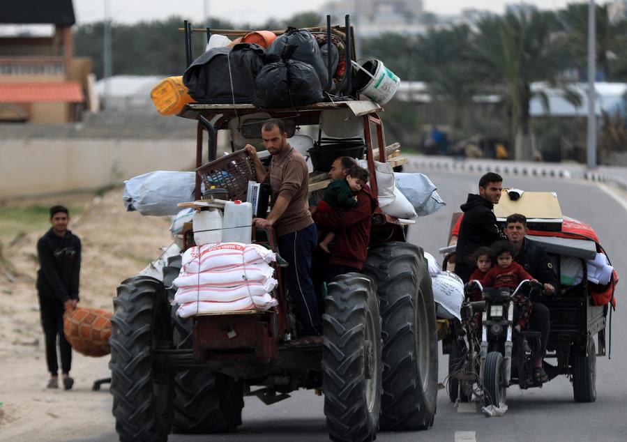 Staff members in the costume of the God of Wealth interact with tourists in Zhuquan Village of Linyi City, east China's Shandong Province, Feb. 14, 2024. Ceremonies were held Wednesday to welcome the God of Wealth as a tradition on the fifth day of the Chinese New Year. (Photo by Wang Yanbing/Xinhua)Visitors view exhibits at a museum in Urumqi, capital of northwest China's Xinjiang Uygur Autonomous Region, Feb. 14, 2024. Many people choose to spend their Spring Festival holiday by viewing exhibitions in museums. (Xinhua/Ding Lei)People look at a giant dragon-shaped lantern at a fair in Xicheng District of Beijing, capital of China, Feb. 14, 2024. People across China are enjoying the ongoing Spring Festival holiday in various ways. (Xinhua/Ju Huanzong)This photo taken on Feb. 14, 2024 shows a flower shop with red roses on Valentine's Day in Gharghur, Malta. (Photo by Jonathan Borg/Xinhua)People leave their home after Israeli bombings in the southern Gaza Strip city of Rafah, on Feb. 13, 2024. On Tuesday, the Hamas-run Health Ministry announced that the Israeli military killed 133 Palestinians and wounded 162 others in the Gaza Strip during the past 24 hours. This brings the total number of deaths to 28,473 and injuries to 68,146 in the Palestinian enclave since the Israel-Hamas conflict broke out on Oct. 7, 2023, the ministry said in a press statement. (Photo by Yasser Qudih/Xinhua)Ginni Van Katwijk of the Netherlands competes during the women's 20m final of high diving event at the World Aquatics Championships 2024 in Doha, Qatar, Feb. 14, 2024. (Xinhua/Du Yu)■