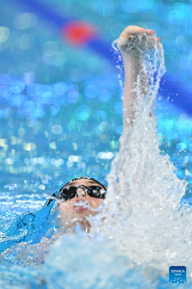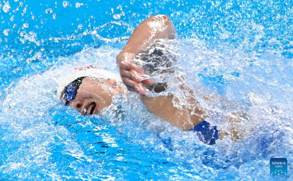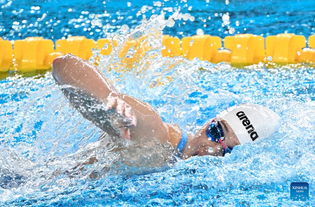 Ai Yanhan of China competes during the women's 200m freestyle final of swimming event at the World Aquatics Championships 2024 in Doha, Qatar, Feb. 14, 2024. (Xinhua/Luo Yuan)