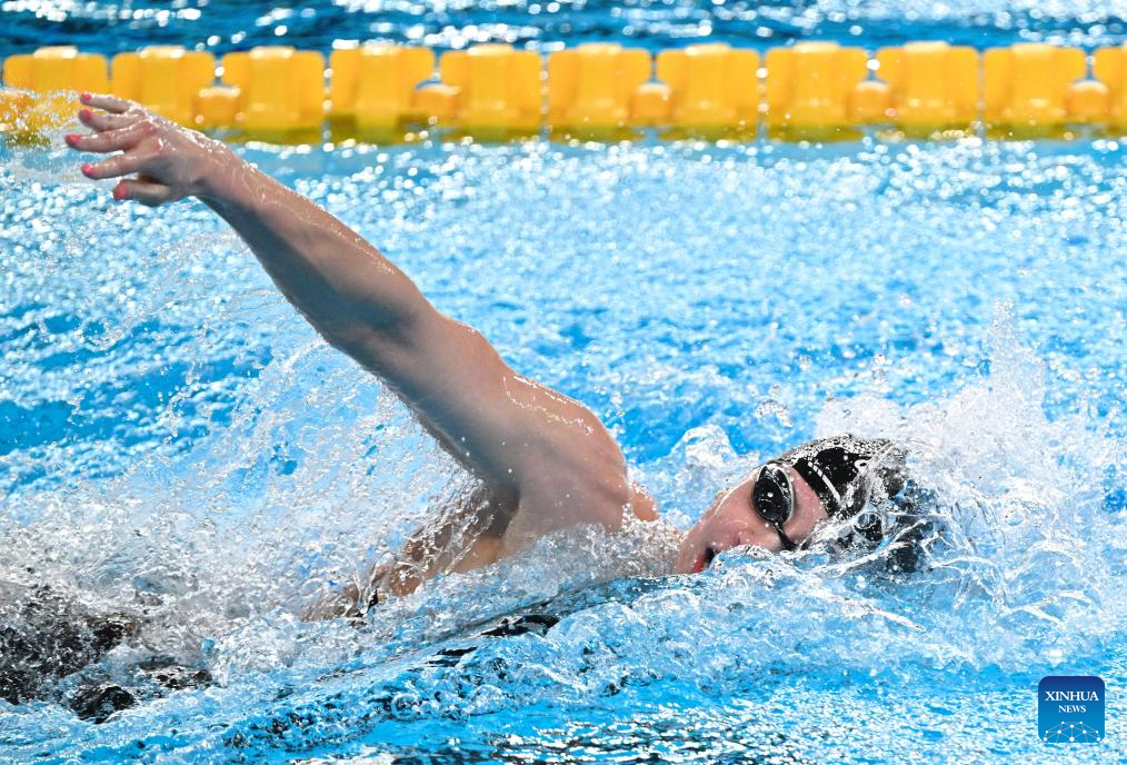 Siobhan Bernadette Haughey of China's Hong Kong competes during the women's 200m freestyle final of swimming event at the World Aquatics Championships 2024 in Doha, Qatar, Feb. 14, 2024. (Xinhua/Xia Yifang)
