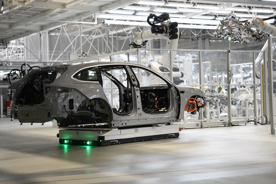 People visit the booth of Chinese carmaker Xpeng during the 2023 International Motor Show, officially known as the IAA MOBILITY 2023, in Munich, Germany, Sept. 5, 2023. (Xinhua/Ren Pengfei)