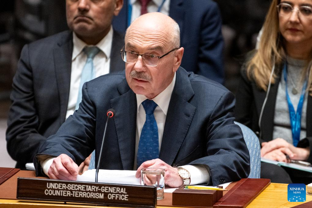 Vladimir Voronkov, UN under-secretary-general for the Office of Counter-Terrorism, speaks at a Security Council briefing at the UN headquarters in New York on Feb. 15, 2024. The UN's top counter-terrorism official on Thursday emphasized the need for international cooperation and a comprehensive strategy to effectively combat the global threat of terrorism, advocating a multilateral approach that goes beyond the use of force. (Eskinder Debebe/UN Photo/Handout via Xinhua)