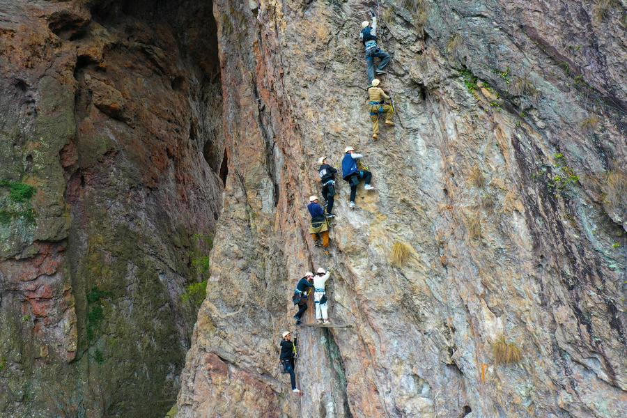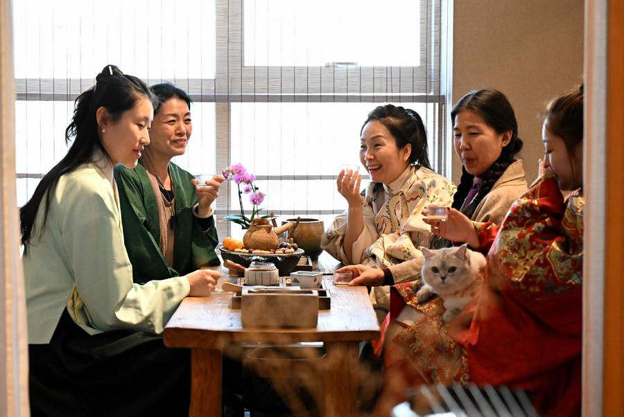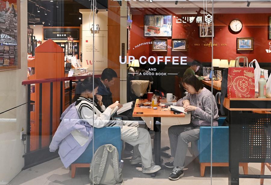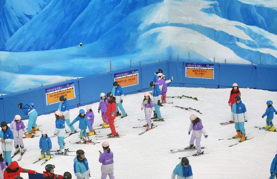 People experience water sports in Sanya, south China's Hainan Province, on Feb. 15, 2024. (Photo by Sha Xiaofeng/Xinhua)Citizens read books at a bookstore in Xiqing District, north China's Tianjin, on Feb. 16, 2024. (Xinhua/Li Ran)Tourists wearing traditional costumes visit a scenic area in Xiangyang, central China's Hubei Province, Feb. 13, 2024. (Photo by Yang Dong/Xinhua)People visit the Anhui Geological Museum in Hefei, east China's Anhui Province, Feb. 16, 2024. (Xinhua/Zhou Mu)Tourists wearing costumes pose for photos in Harbin, northeast China's Heilongjiang Province, Feb. 16, 2024. (Xinhua/Wang Jianwei)A drone photo taken on Feb. 16, 2024 shows people learning to ski at an indoor ice and snow park in Chongchuan District of Nantong City, east China's Jiangsu Province. (Photo by Xu Congjun/Xinhua)A tourist visits Anhui Science and Technology Museum in Hefei, east China's Anhui Province, Feb. 16, 2024. (Xinhua/Cao Li)People enjoy tea and music in a club in Qiaoxi District of Shijiazhuang, north China's Hebei Province, on Feb. 16, 2024. (Photo by Chen Qibao/Xinhua)Young couple Guo Zhengzhang (R) and Jiao Dongyan make a rocking chair at a woodworking workshop in Liaocheng, east China's Shandong Province, on Feb. 16, 2024. They learned woodworking skills during this Spring Festival holiday and tried to jointly make a rocking chair. (Photo by Zhang Zhenxiang/Xinhua)A person paraglides in Yuanshi County of Shijiazhuang City, north China's Hebei Province, Feb. 14, 2024. (Xinhua/Wang Xiao)Tourists experience rock climbing at Yandang Mountain in Wenzhou, east China's Zhejiang Province, on Feb. 16, 2024. (Photo by Liu Zhenqing/Xinhua)People practice yoga at a yoga club in Tancheng County of Linyi, east China's Shandong Province, on Feb. 16, 2024. (Photo by Zhang Chunlei/Xinhua)Young people pose for their New Year portraits in Shinan District of Qingdao, east China's Shandong Province, on Feb. 16, 2024. (Photo by Wang Haibin/Xinhua)Basketball enthusiasts pose for photos with Chinese basketball player Li Yuan (L, front) after a match in Xi'an, northwest China's Shaanxi Province, Feb. 11, 2024. (Xinhua/Li Yibo)People enjoy skiing in Yuanshi County of Shijiazhuang City, north China's Hebei Province, Feb. 14, 2024. (Xinhua/Wang Xiao)Citizens play basketball in a gymnasium in Yantai, east China's Shandong Province, on Feb. 16, 2024. (Photo by Tang Ke/Xinhua)■
