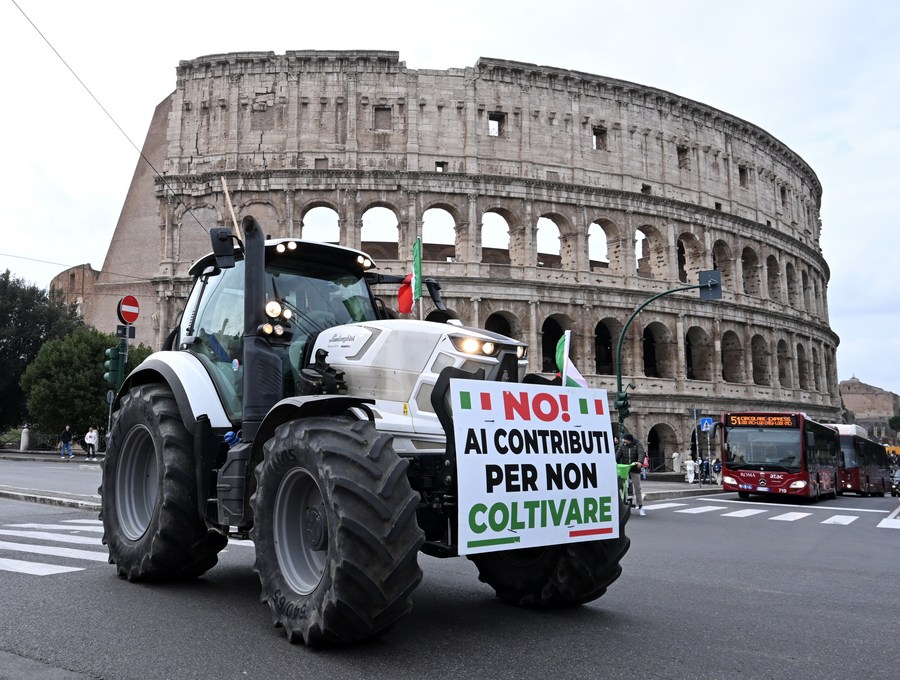 About 1,000 Italian farmers rallied in Rome's busy areas, around the Colosseum and outside the city hall on Campidoglio Square. Ten tractors were seen at the Circus Maximus, the ancient Roman stadium for mass events and races.