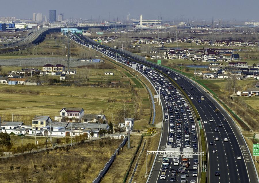 A child waits to get on a train at Tengzhou Railway Station in Tengzhou, east China's Shandong Province, Feb. 16, 2024. (Photo by Li Zhijun/Xinhua)An aerial drone photo taken on Feb. 16, 2024 shows vehicles running on a road-rail bridge, which connects Suzhou and Nantong of Jiangsu Province with Shanghai, over the Yangtze River in Nantong, east China's Jiangsu Province. (Photo by Xu Congjun/Xinhua)An aerial drone photo taken on Feb. 16, 2024 shows vehicles running on the Daning River grand bridge in Wushan County, southwest China's Chongqing Municipality. (Photo by Wang Zhonghu/Xinhua)Travelers prepare to get on a train at Wuzhou South Railway Station in Wuzhou, south China's Guangxi Zhuang Autonomous Region, Feb. 16, 2024. (Photo by He Huawen/Xinhua)Travelers arrive at Nanjing Railway Station in Nanjing, east China's Jiangsu Province, Feb. 16, 2024. (Photo by Yang Suping/Xinhua)Travelers are seen at the waiting hall of Taizhou Railway Station in Taizhou, east China's Jiangsu Province, Feb. 16, 2024. (Photo by Tang Dehong/Xinhua)An aerial drone photo taken on Feb. 16, 2024 shows vehicles running on Beijing-Shanghai Expressway in Huaian, east China's Jiangsu Province. (Photo by He Jinghua/Xinhua)Travelers arrive at Shanghai Hongqiao Railway Station in east China's Shanghai, Feb. 16, 2024. (Xinhua/Wang Xiang)Travelers wave goodbye after boarding a train at Wuchang Railway Station in Wuhan, central China's Hubei Province, Feb. 16, 2024. (Photo by Zhao Jun/Xinhua)■