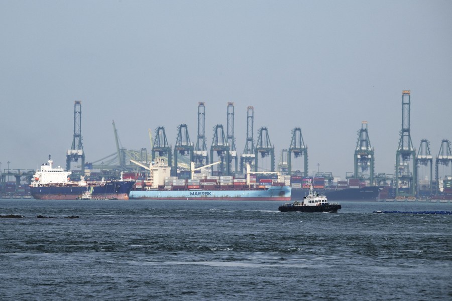 Container ships berth at Singapore's Pasir Panjang container terminal on Jan. 31, 2024. (Photo by Then Chih Wey/Xinhua)