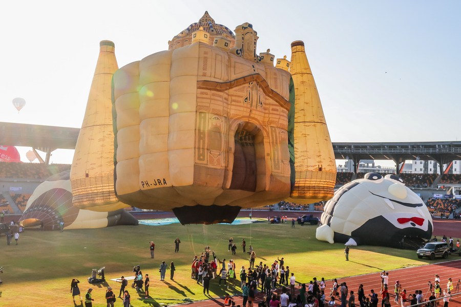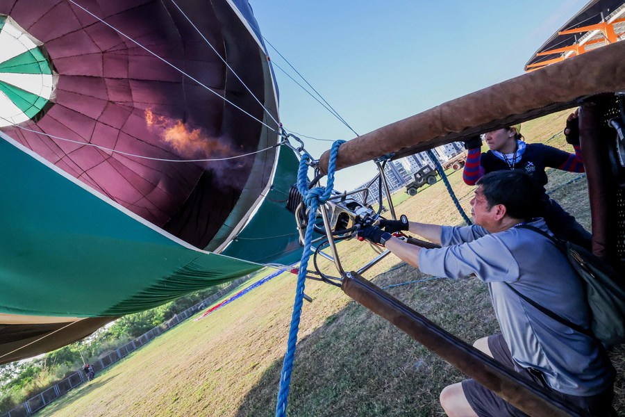 Aviators prepare to fly a hot air balloon during the 24th Philippine International Hot Air Balloon Fiesta in Tarlac Province, the Philippines, Feb. 16, 2024. (Xinhua/Rouelle Umali) ■