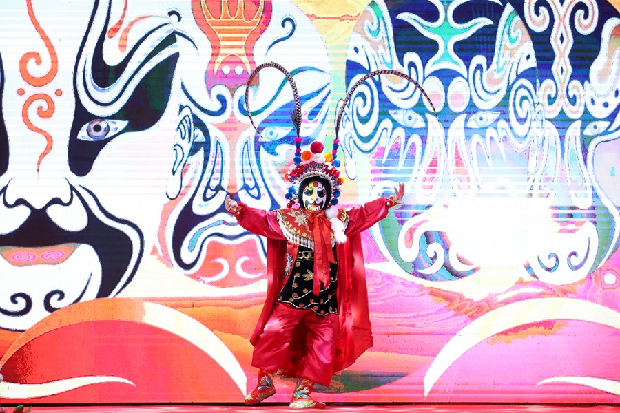 An artist performs during a Chinese New Year celebration in Yangon, Myanmar, Feb. 18, 2024. (Xinhua/ Myo Kyaw Soe)