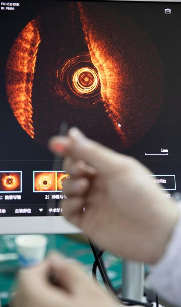OCT, or optical coherence tomography technology, allows doctors to examine patients and display real-time three-dimensional images where the catheter passes, providing guide for surgery.