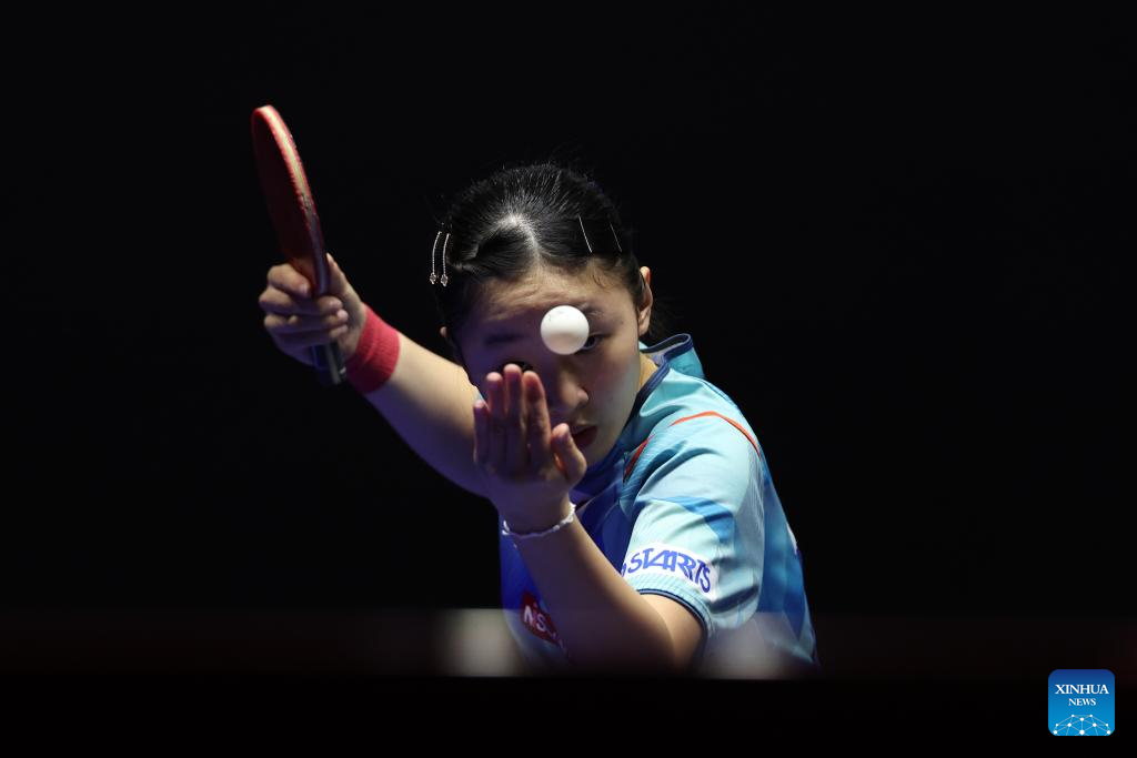 Sun Yingsha of China competes against Jinnipa Sawettabut of Thailand during the women's team round of 16 match between China and Thailand at the ITTF World Team Table Tennis Championships Finals Busan 2024 in Busan, South Korea, Feb. 21, 2024. (Xinhua/Yang Shiyao)
