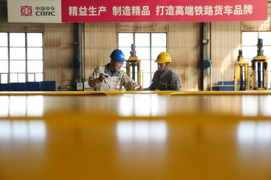 Wang Hai (R) checks the welding process of a product for export at a workshop of CRRC Qiqihar Co., Ltd. in northeast China's Heilongjiang Province, Feb. 4, 2024. (Xinhua/Wang Jianwei)Wang Hai (C) discusses welding technology with other members of his studio at CRRC Qiqihar Co., Ltd. in northeast China's Heilongjiang Province, Feb. 4, 2024. (Xinhua/Wang Jianwei)Wang Hai (L) instructs an apprentice on welding at a training base of CRRC Qiqihar Co., Ltd. in northeast China's Heilongjiang Province, Feb. 4, 2024. (Xinhua/Wang Jianwei)Wang Hai (L) checks the welding process of a product for export at a workshop of CRRC Qiqihar Co., Ltd. in northeast China's Heilongjiang Province, Feb. 4, 2024. (Xinhua/Wang Jianwei)Wang Hai (L) checks the welding process of a product for export at a workshop of CRRC Qiqihar Co., Ltd. in northeast China's Heilongjiang Province, Feb. 4, 2024. (Xinhua/Wang Jianwei)Wang Hai (L) instructs an apprentice on welding at a training base of CRRC Qiqihar Co., Ltd. in northeast China's Heilongjiang Province, Feb. 4, 2024. (Xinhua/Wang Jianwei)Wang Hai (L) checks the welding process of a product for export at a workshop of CRRC Qiqihar Co., Ltd. in northeast China's Heilongjiang Province, Feb. 4, 2024. (Xinhua/Wang Jianwei)Wang Hai (3rd R) attends a symposium with his colleagues at CRRC Qiqihar Co., Ltd. in northeast China's Heilongjiang Province, Feb. 4, 2024. (Xinhua/Wang Jianwei)