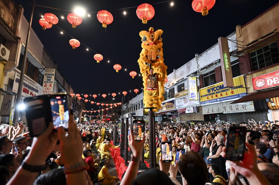 Artists perform lion dance during the Penang Chinese New Year Celebration in George Town, Penang, Malaysia, Feb. 18, 2024. (Photo by Xu Xinyu/Xinhua)