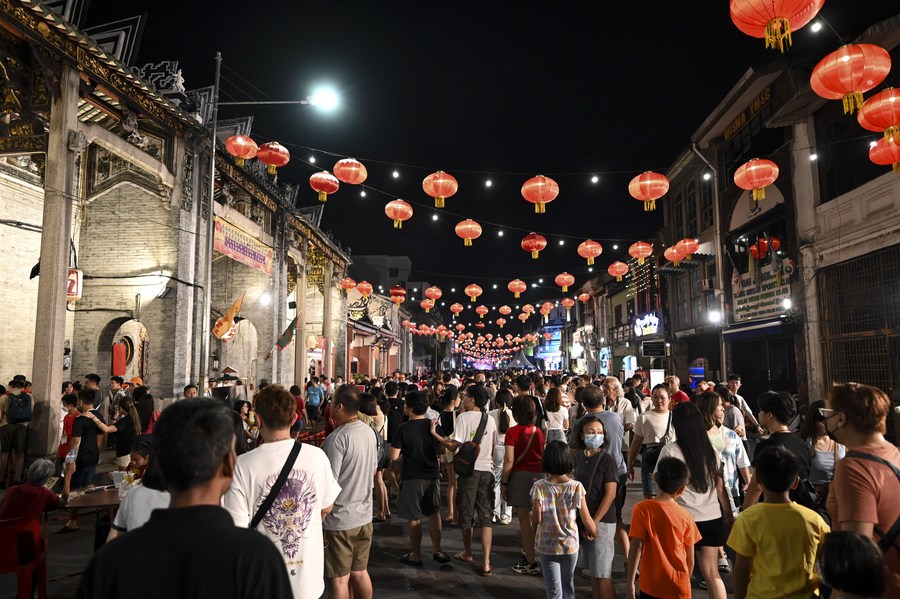 People attend the Penang Chinese New Year Celebration in George Town, Penang, Malaysia, Feb. 18, 2024. (Photo by Xu Xinyu/Xinhua)