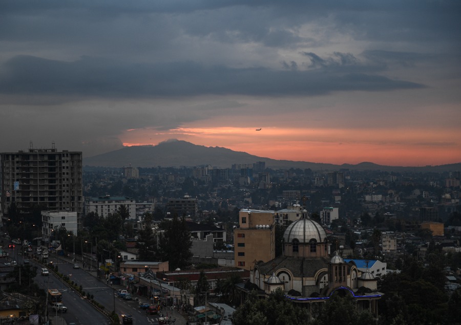 This photo, taken on Feb. 15, 2024, shows the dawn in Addis Ababa, Ethiopia. (Xinhua/Li Yahui)■